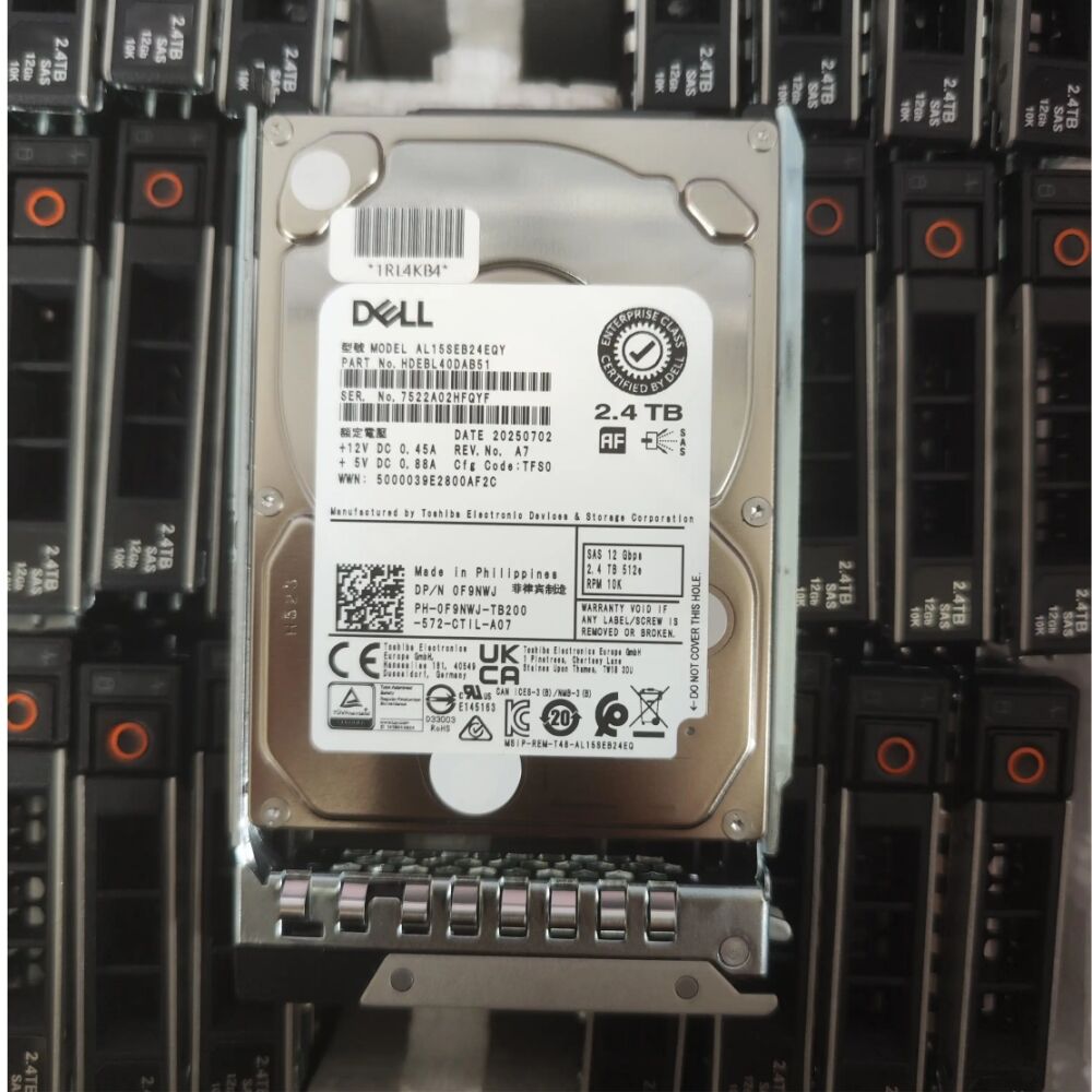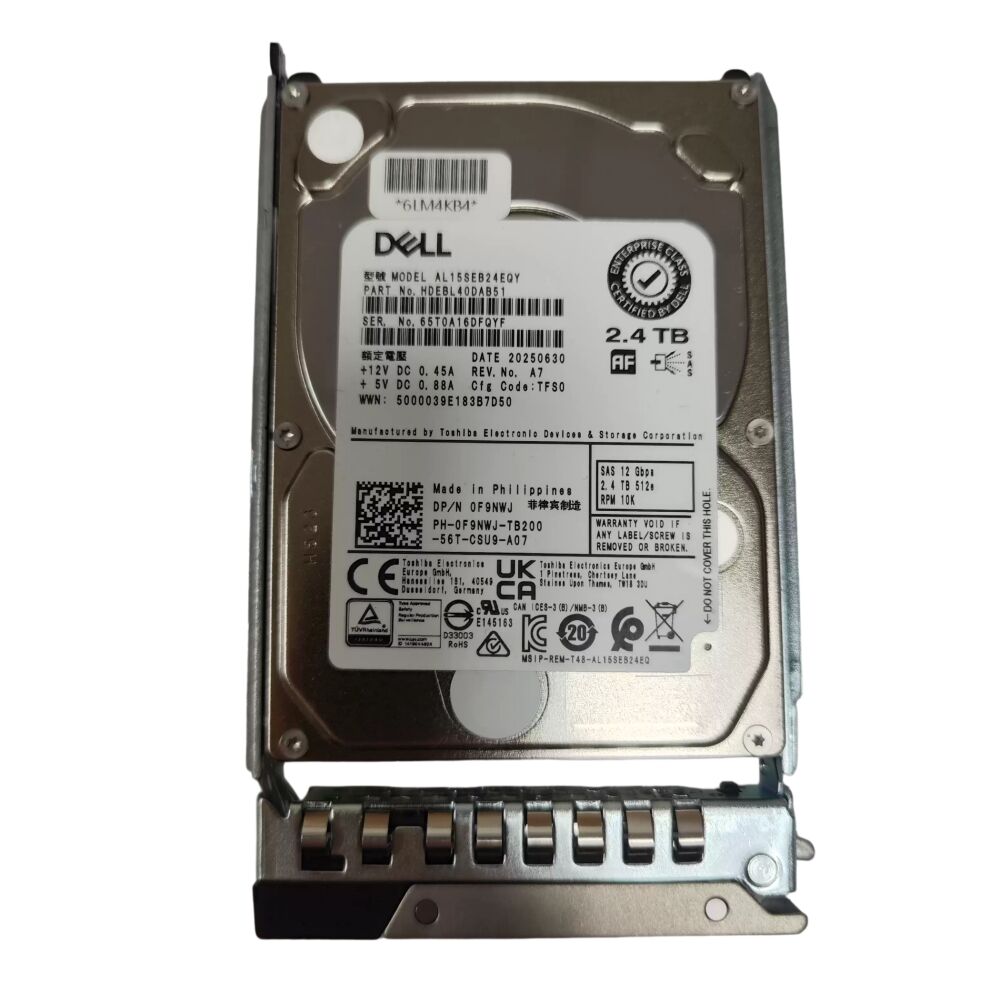 محرك أقراص صلب لشركة ديل سعة ٢,٤ تيرابايت، بسرعة دوران ١٠٠٠٠ دورة في الدقيقة، واجهة SAS بسرعة ١٢ جيجابت/ثانية، تنسيق ٥١٢e، بحجم ٢,٥ بوصة، قابل للاستبدال الساخن