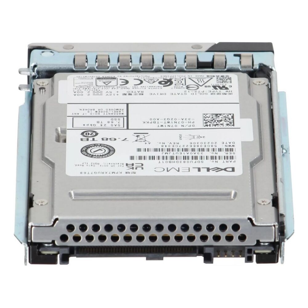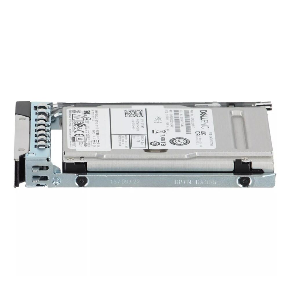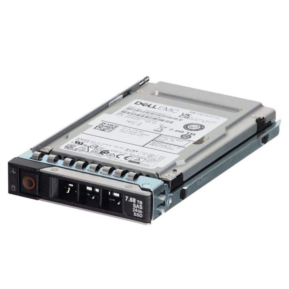 وحدة تخزين صلبة لشركة ديل سعة ٧,٦٨ تيرابايت، تصل سرعتها إلى ٢٤ جيجابت/ثانية عبر واجهة SAS، من نوع قراءة مكثفة (Read Intensive)، بتنسيق ٥١٢e، بحجم ٢,٥ بوصة أو ٣,٥ بوصة