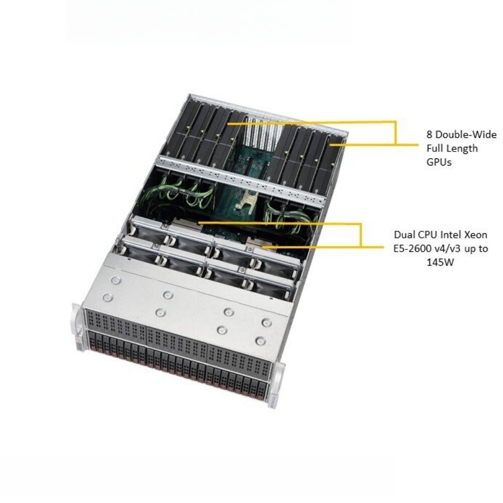 SYS-4028GR-TRT 4U GPU Server-Dual Intel Xeon E5-2600 v3/v4/24 DDR4 DIMMs/24-Bay 2.5" Hot-Swap/8 PCIe 3.0 x16 Slots/High Performance Computing & AI Training